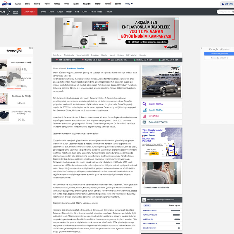 Algün & Dedeman İşbirliği ile Düzce’ye ilk 5 yıldızlı marka oteli için imzalar atıldı