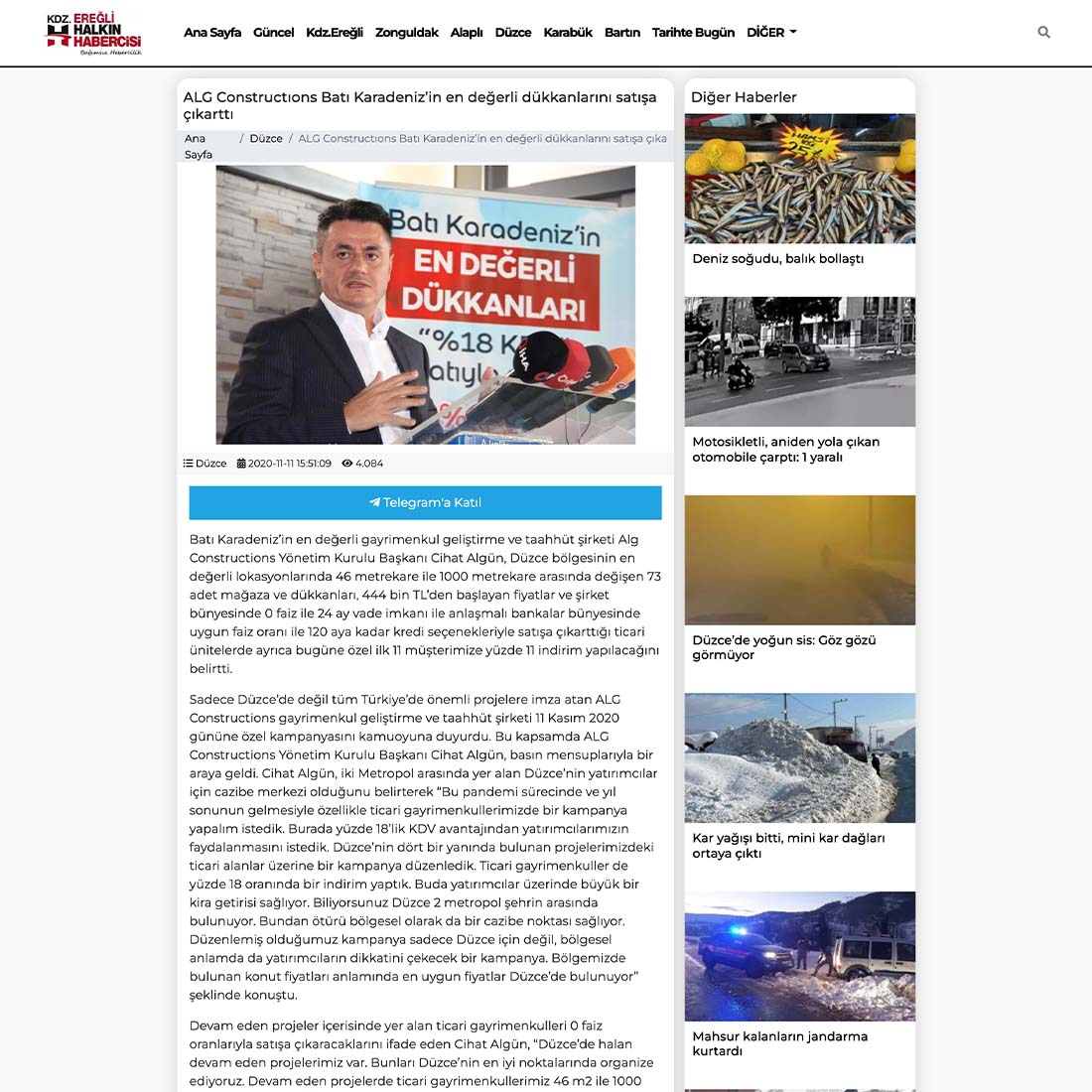 Batı Karadeniz’in en değerli gayrimenkul geliştirme ve taahhüt şirketi Alg Constructions başkanı Cihat ALGÜN, Düzce bölgesinin en değerli lokasyonlarında, 46 M2 ile 1000 m2 arasında değişen 73 adet mağaza ve dükkanları, 444 bin tl den başlayan fiyatlar ve şirket bünyesinde % 0 faiz ile 24 ay vade imkanı ile anlaşmalı bankalar bünyesinde uygun faiz oranı ile 120 aya kadar kredi seçenekleriyle satışa çıkarttığı ticari ünitelerde, ayrıca bugüne özel ilk 11 müşteriye % 11 indirim yapılacağını belirtti. Düzce’nin dört bir yanında % 18 Kdv avantajı ile hemen tapularını alabileceklerini belirten Cihat ALGÜN, ”her yıl çıkartmış olduğumuz kampanyalarımıza özel bu yıl bir birinden kıymetli ve değerli olan dükkan ve mağazalarımızı çok özel ödeme seçenekleri ve çok özel indirimler ile satışa çıkarttık” dedi. Dükkan yatırımlarının bir çok avantajları bulunuyor Cihat ALGÜN yaptığı açıklamada şu ifadeleri kullandı: ”Sizlerin de bildiği üzere dükkan ve mağazalar ticari gayrimenkul olarak bilinir. Yıl sonunda % 18 kdv avantajı, yüksek kira getirisi ve kurumsal kiracıları ile yatırımcılarının yüzünü her dönemde güldürmektedir.