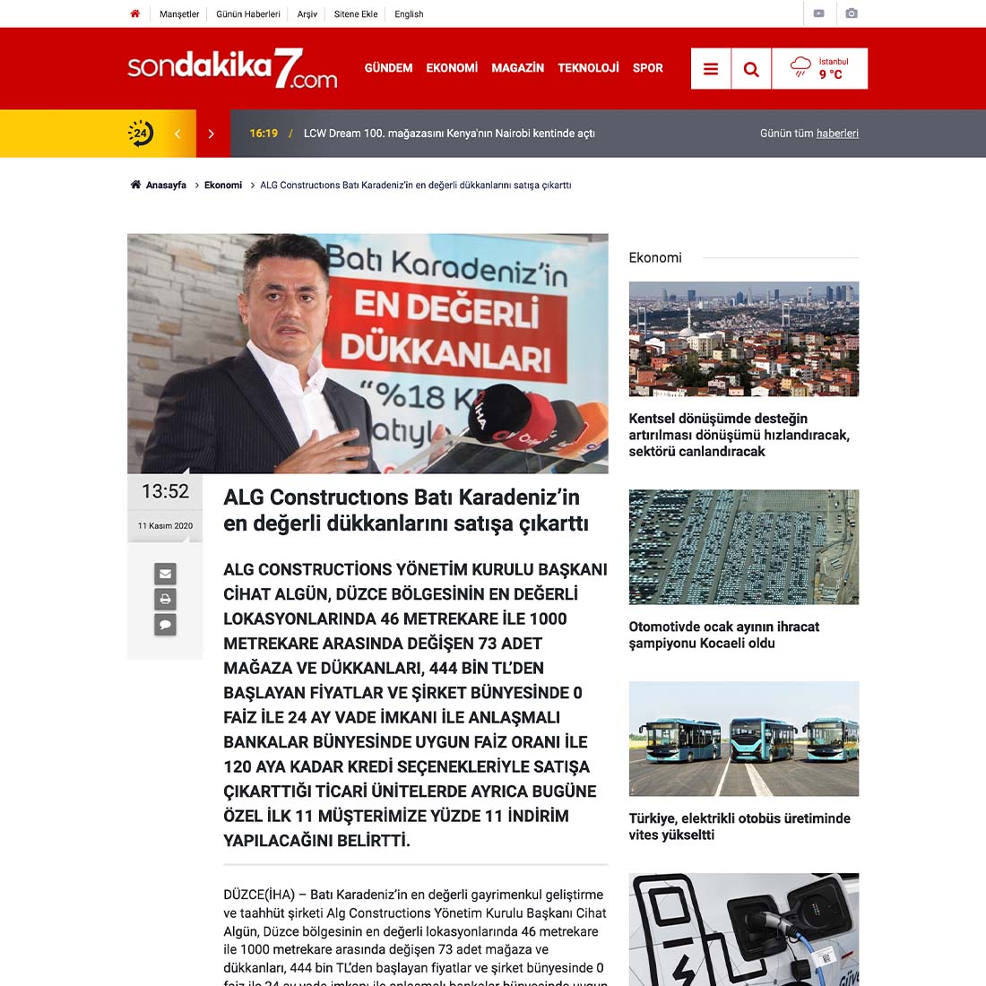 Batı Karadeniz’in en değerli gayrimenkul geliştirme ve taahhüt şirketi Alg Constructions başkanı Cihat ALGÜN, Düzce bölgesinin en değerli lokasyonlarında, 46 M2 ile 1000 m2 arasında değişen 73 adet mağaza ve dükkanları, 444 bin tl den başlayan fiyatlar ve şirket bünyesinde % 0 faiz ile 24 ay vade imkanı ile anlaşmalı bankalar bünyesinde uygun faiz oranı ile 120 aya kadar kredi seçenekleriyle satışa çıkarttığı ticari ünitelerde, ayrıca bugüne özel ilk 11 müşteriye % 11 indirim yapılacağını belirtti. Düzce’nin dört bir yanında % 18 Kdv avantajı ile hemen tapularını alabileceklerini belirten Cihat ALGÜN, ”her yıl çıkartmış olduğumuz kampanyalarımıza özel bu yıl bir birinden kıymetli ve değerli olan dükkan ve mağazalarımızı çok özel ödeme seçenekleri ve çok özel indirimler ile satışa çıkarttık” dedi. Dükkan yatırımlarının bir çok avantajları bulunuyor Cihat ALGÜN yaptığı açıklamada şu ifadeleri kullandı: ”Sizlerin de bildiği üzere dükkan ve mağazalar ticari gayrimenkul olarak bilinir. Yıl sonunda % 18 kdv avantajı, yüksek kira getirisi ve kurumsal kiracıları ile yatırımcılarının yüzünü her dönemde güldürmektedir.