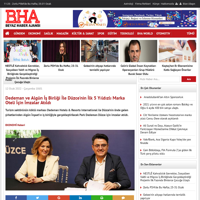 Dedeman ve Algün İş Birliği İle Düzce’nin İlk 5 Yıldızlı Marka Oteli İçin İmzalar Atıldı