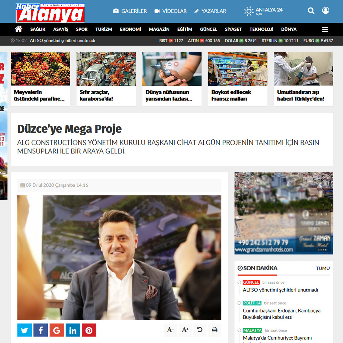 Düzce’ye Mega Proje Düzce’nin prestijli yapı ve konut firmalarından olan ALG Constructions, bölgenin en büyük yaşam ve ticaret alanını inşa etmeye hazırlanıyor. Düzce’nin prestijli yapı ve konut firmalarından olan ALG Constructions, bölgenin en büyük yaşam ve ticaret alanını inşa etmeye hazırlanıyor. 2023 yılında tamamlanacak olan yatırım sayesinde yaklaşık 3 bin kişi iş sahibi olacak. ALG Constructions Yönetim Kurulu Başkanı Cihat Algün projenin tanıtımı için basın mensupları ile bir araya geldi. Beklentileri karşılayacak kapsamlı bir karma yaşam projesini Düzce’ye kazandırmayı amaçladıklarını kaydeden Cihat Algün “Bölgede uygulanan en büyük proje olma niteliği taşıyor. Proje alışveriş merkezi, otel ve yaşam alanlarını kapsıyor. Düzce’nin beklentilerini dikkate alan geniş kapsamlı bir proje. Düzce’nin önemli bir eseri olsun istedik. Düzce iki metropol şehir arasında, doğal güzelliklere sahip olmasına rağmen hak ettiği değeri bulamamış bir şehir.
