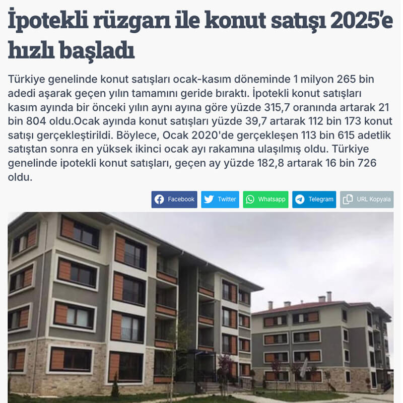 İPOTEKLİ RÜZGARI İLE KONUT SATIŞI 2025’E HIZLI BAŞLADI