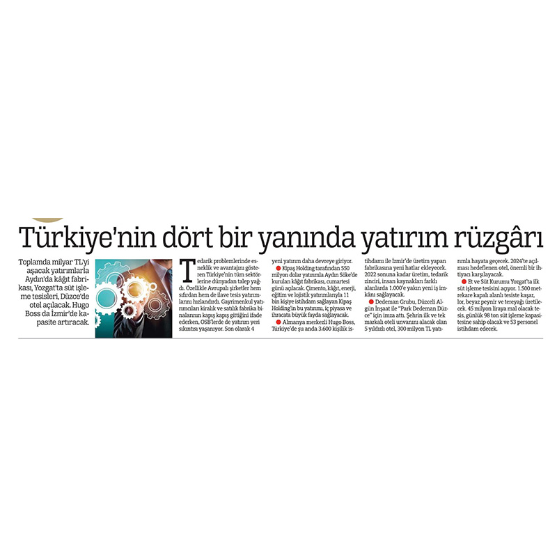 TÜRKİYE’NİN DÖRT BİR YANINDA YATIRIM RÜZGÂRI